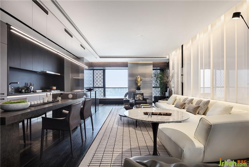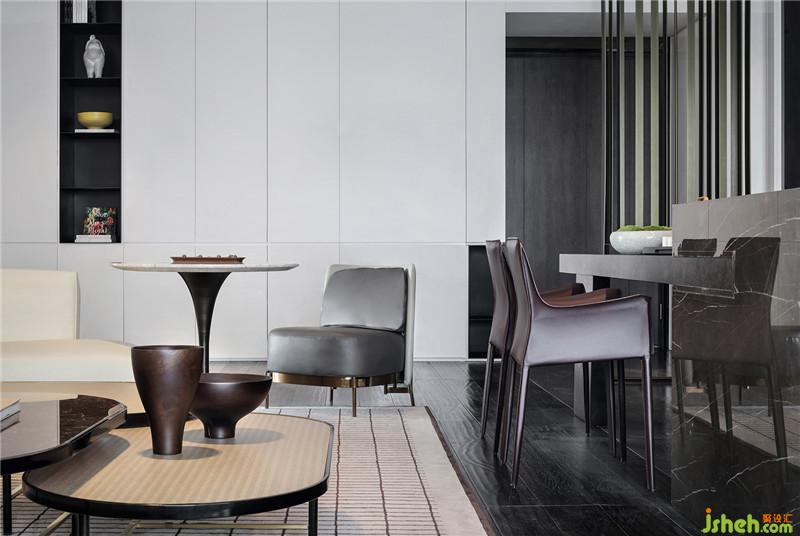 整体空间儒雅、宁静,色调朴素而又温馨和谐,讲述了一种‘隐’于市的生活态度:聚‘富’、露‘贵’、透‘雅’、明‘贤’,能从清淡中感受出欢愉,必是将繁杂进行了过滤,这种境界便是‘简’。