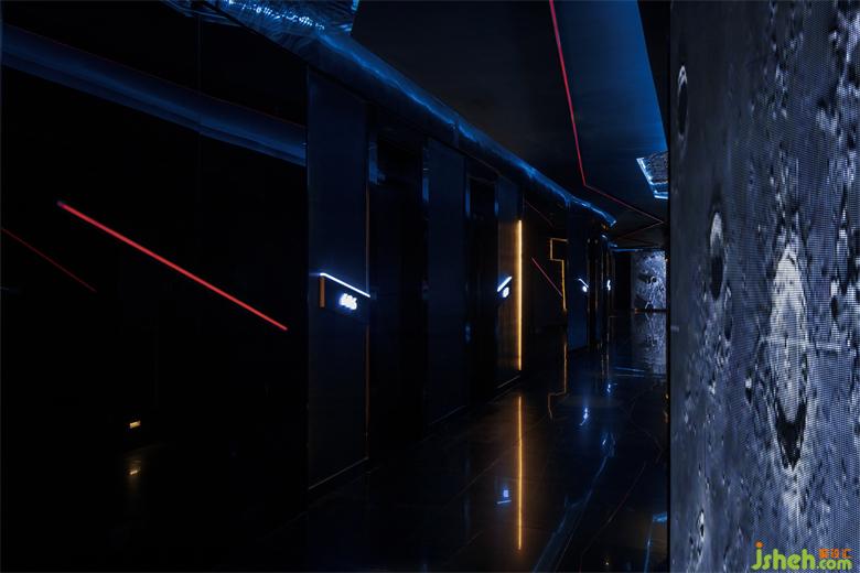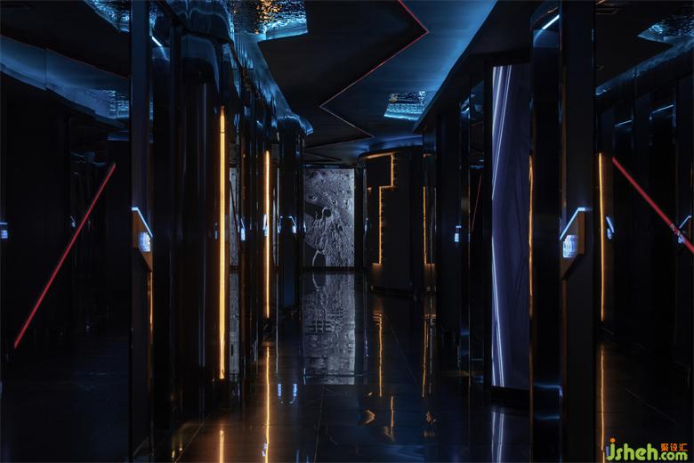 时间让凝固的生命产生了灵魂,空间也就拥有了时间的深度。一个由空间和时间形成的交互性,使得更为完整和充实,我们在KTV设计中利用玻璃、不锈钢镜面,透明与反射的效果,虚实叠加与重合,体现光影与周边的融洽,进一步强化了时空感。