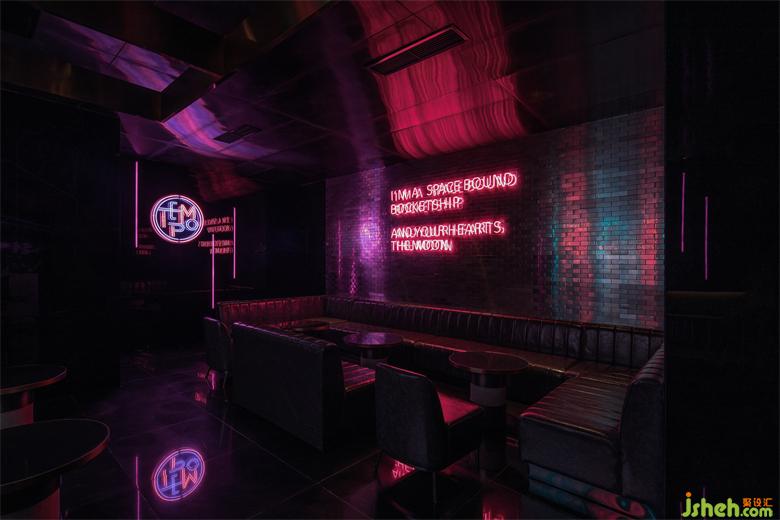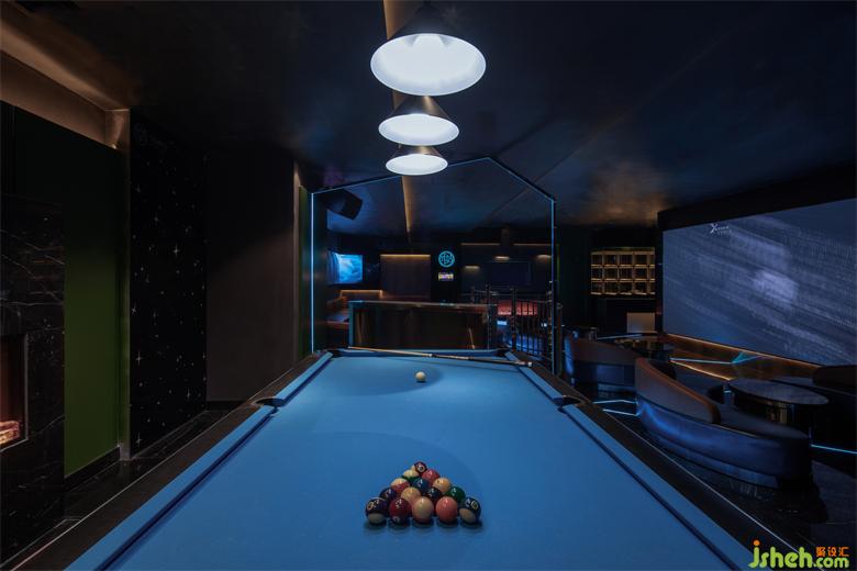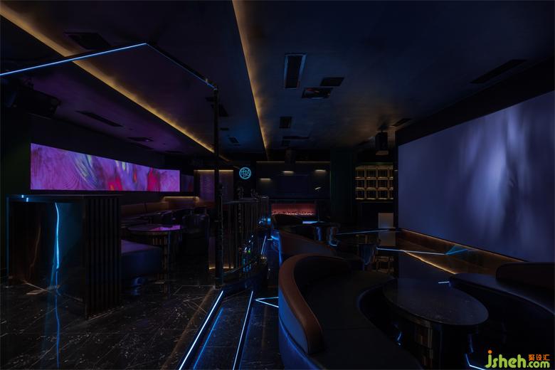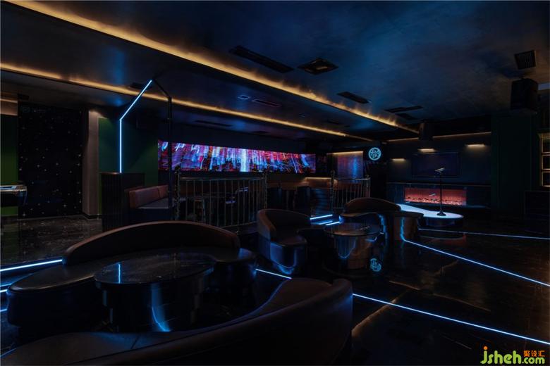 舞动闪耀的顶面、变换的星空灯以及全息影屏包裹整个空间,配置走秀舞台、台球桌等娱乐设置,KTV设计营造一个释放自我的情景氛围。