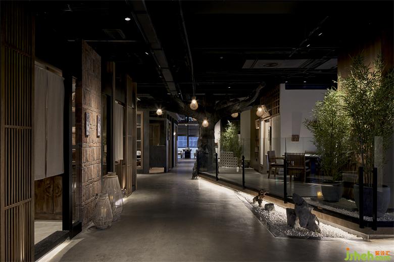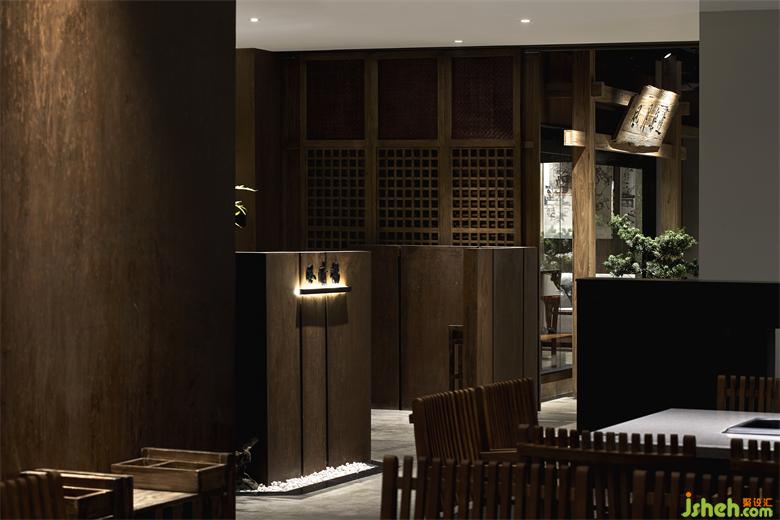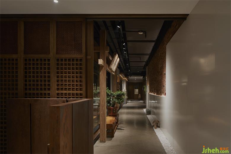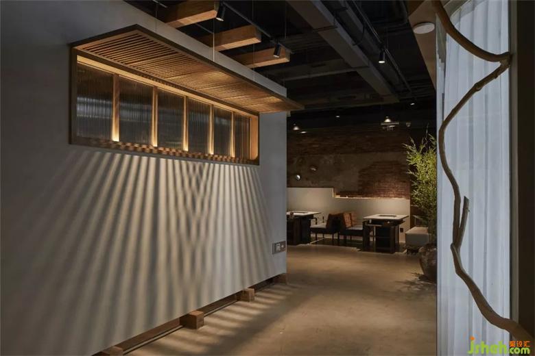 穿过大厅通往走廊,火锅的感觉越被淡化,一径通幽,站在分叉口,望向不同的方位,火锅餐厅装修设计呈现的景观亦有差别,铸就「只在此景中,巷深不知处」的朦胧空间感。