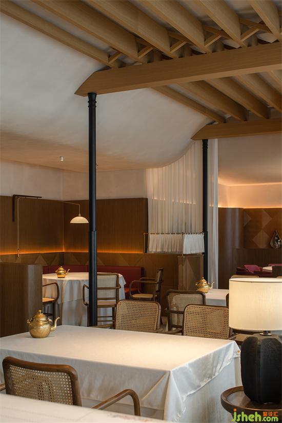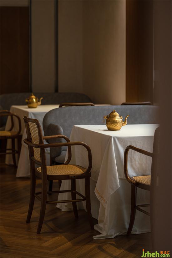 在设计之初,我们与甲方便达成明确的女性化“她”空间设计基调,新派的、西餐化的新疆餐厅,餐厅设计“她”是美的、精致的、有隐约新疆符号的餐饮空间。