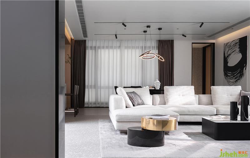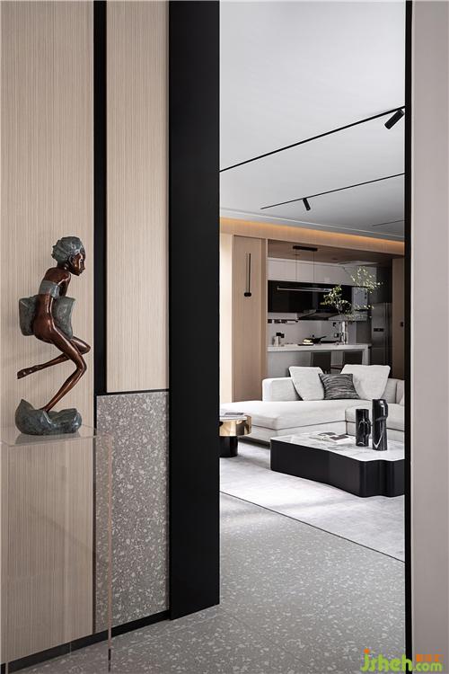 大理石、金属、布艺、皮革,不同材质的碰撞,烘托出空间的精致感。