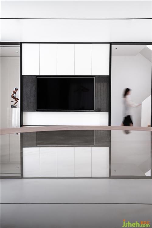 此处,装的下清风明月,亦藏的起世俗繁杂,白色储物柜的运用隐藏的恰到好处。