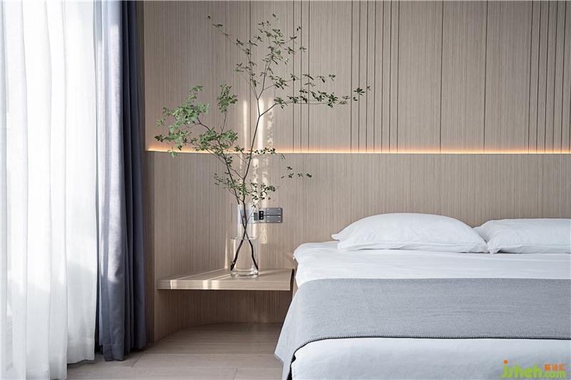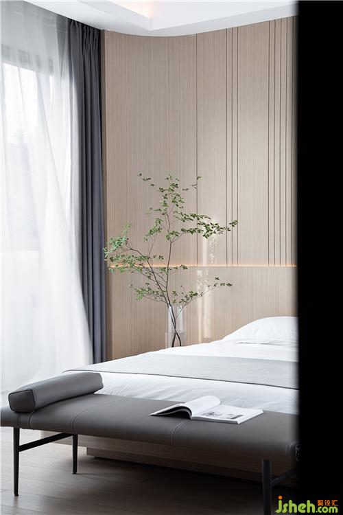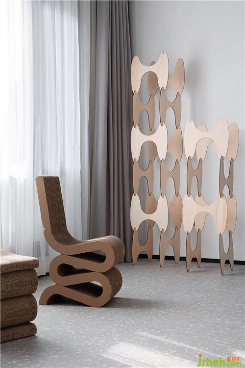 背景的木皮挺阔直接,弧度清晰可见,线条的融入丰富了层次