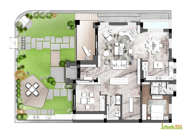 180°庭院景观面拥园入室开阔视野与景致 成为客餐厅的天然布景