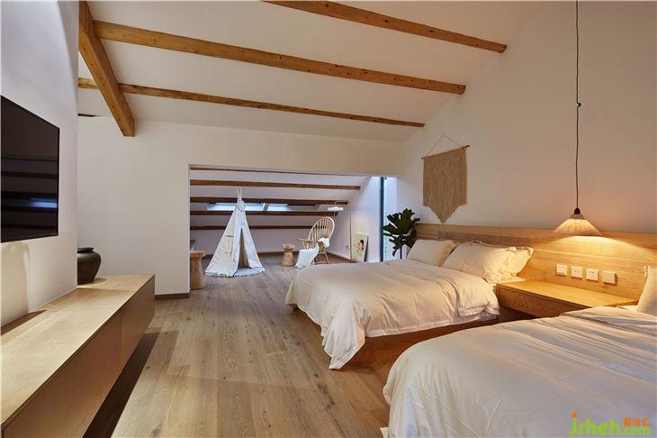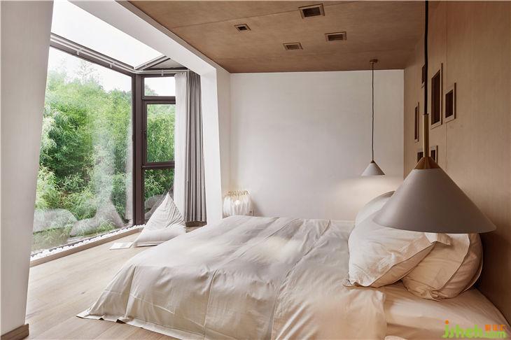 房间的设计将白墙与木质材料相结合,将空间变得自然纯粹,配以现代化简约的装饰,以黄铜材质家具为点缀,映出低调与雅奢,提升室内的整体气质。