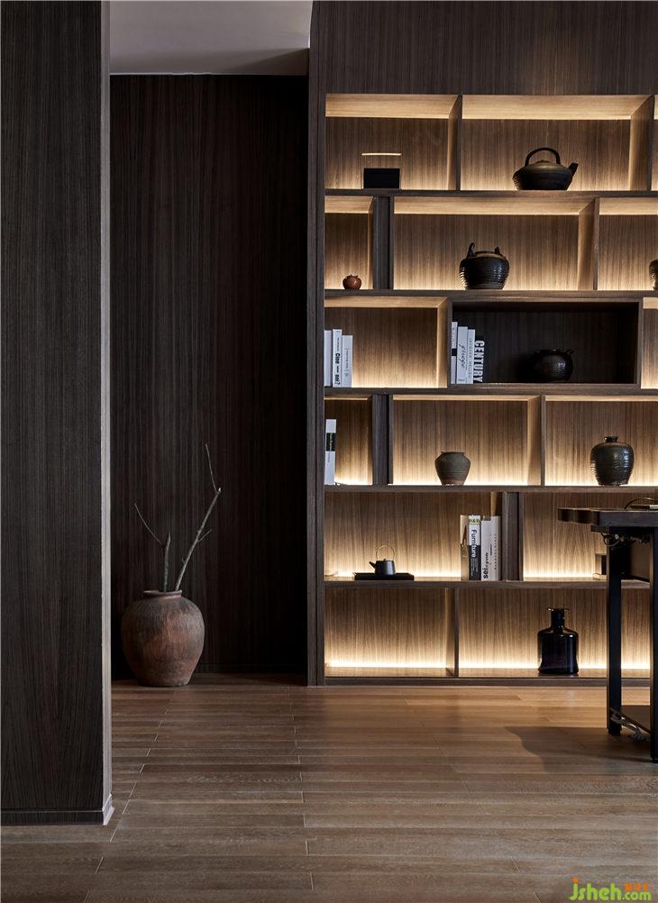 概念区的另一侧为接待区,宾客能够在此办理入住手续,为了减少等待时间,特别设置了书吧与礼品区,巧妙运用了屏风的概念,摆设当地的文化礼品和茶叶来招待宾客。