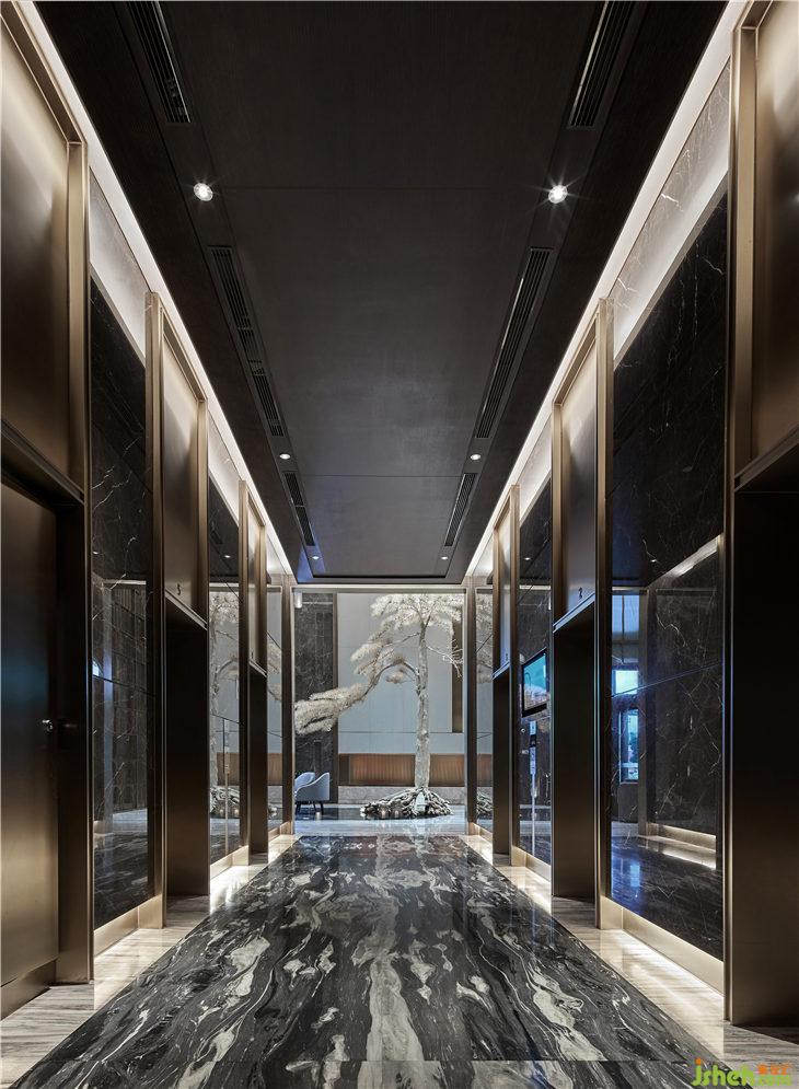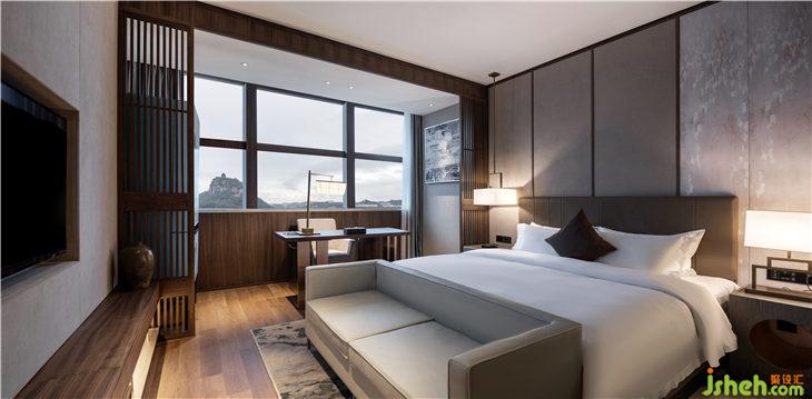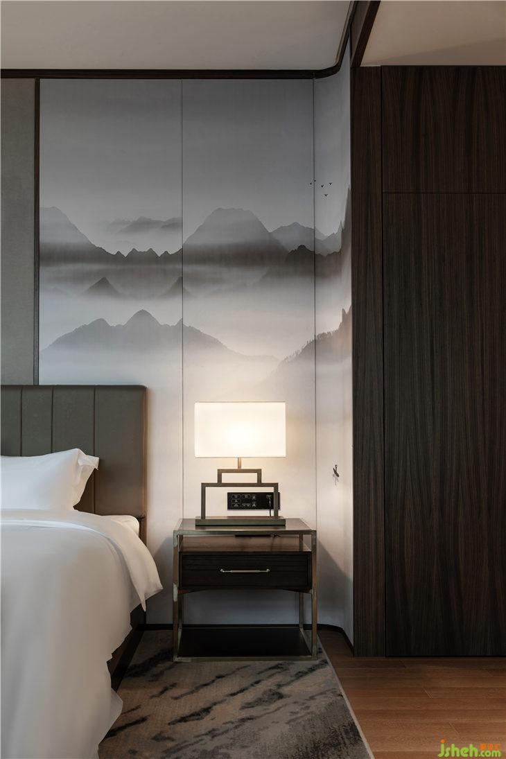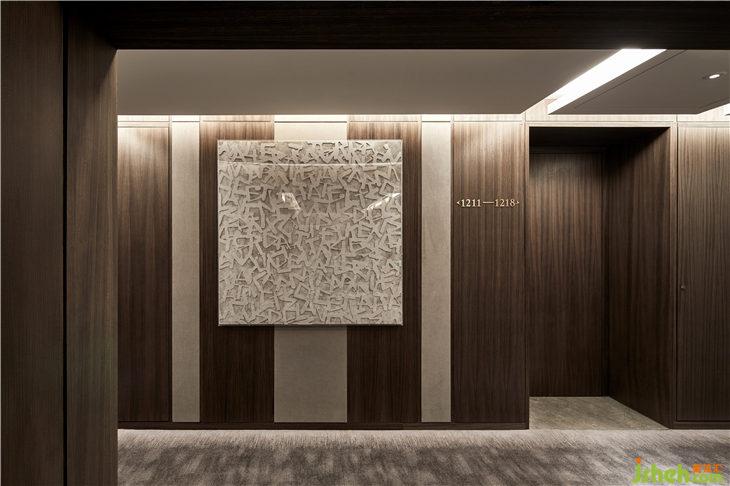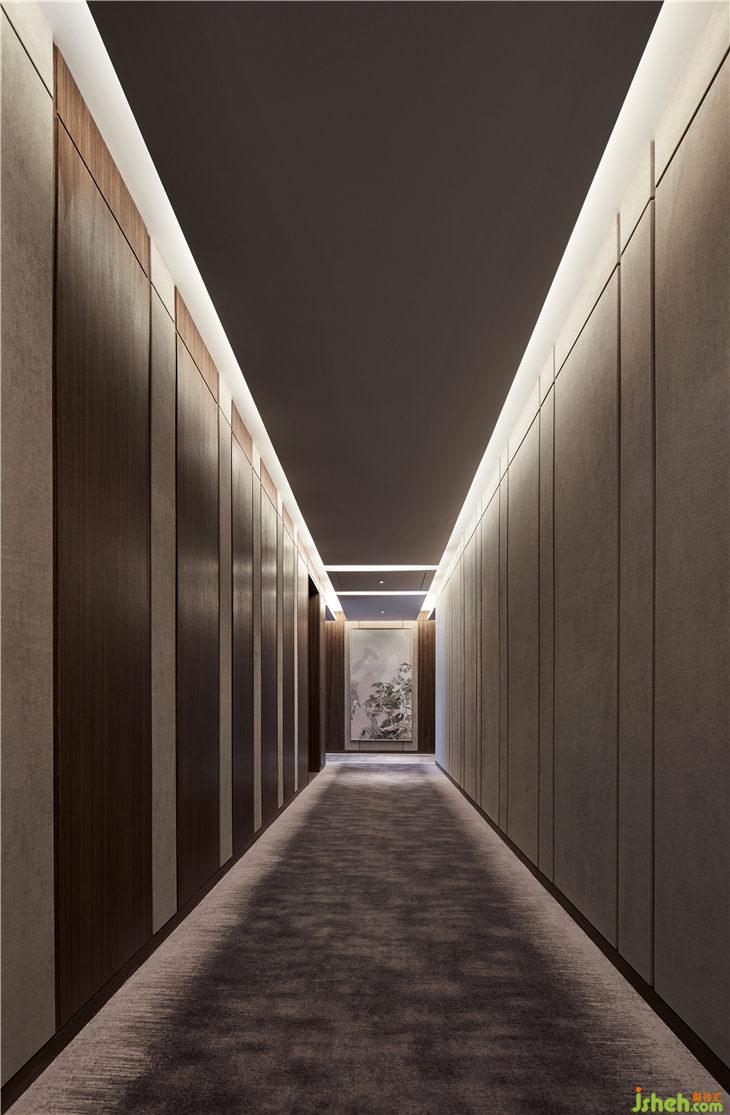 走廊地毯有着松针覆盖地面的意象,设计师希望宾客踩在松软的地毯上,犹如在自然中行走。墙上松树图案的艺术品与空间相得益彰,展现了绝佳的品位与品质。