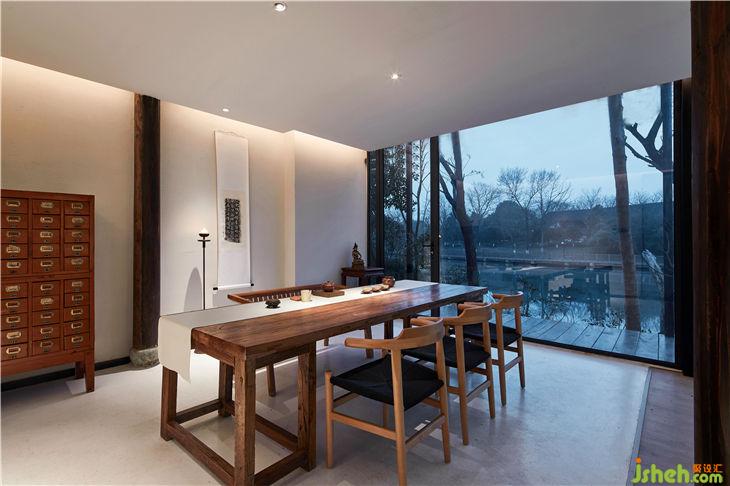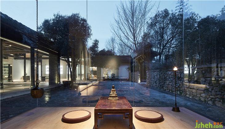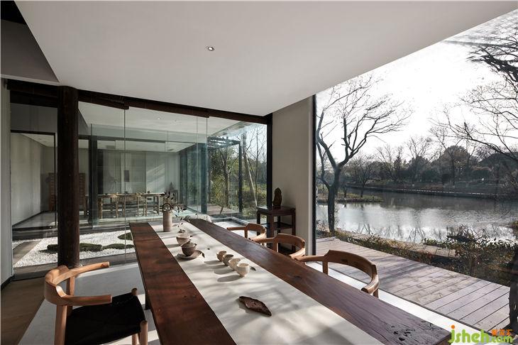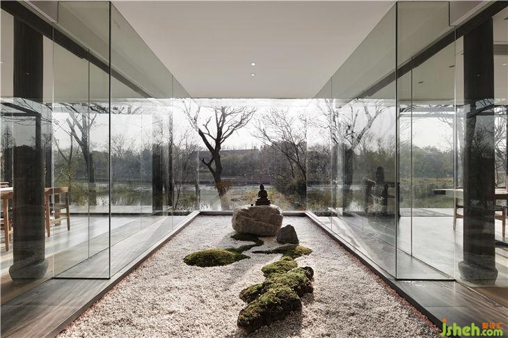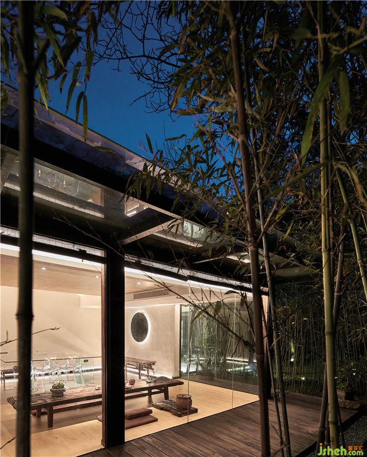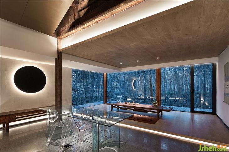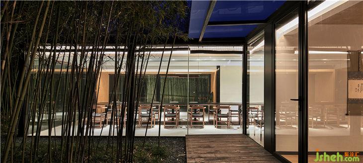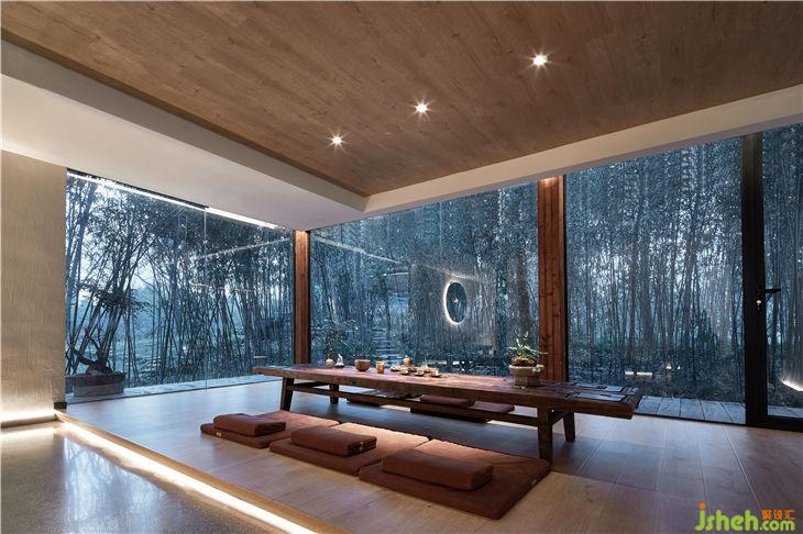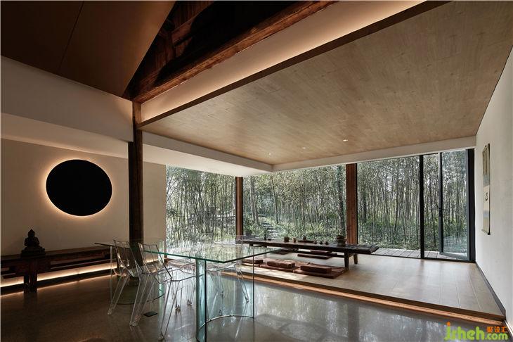 餐厅设计概念是把一个“玻璃盒”置入竹林风景中,自然与空间结合地淋漓尽致。体现出了传统与现代共生,人建筑与自然共生的理念。
