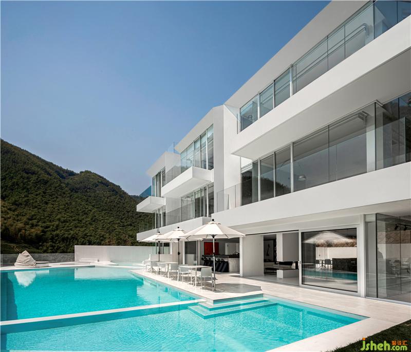 To surrounding environment using acme, designers use large area be born glass to make the natural landscape and space out of the window, the whole building is like a space open to nature, to satisfy the people are yearning for natural and pure, in such a minimalist space, feel the time rest, enjoy the beautiful artistic conception.