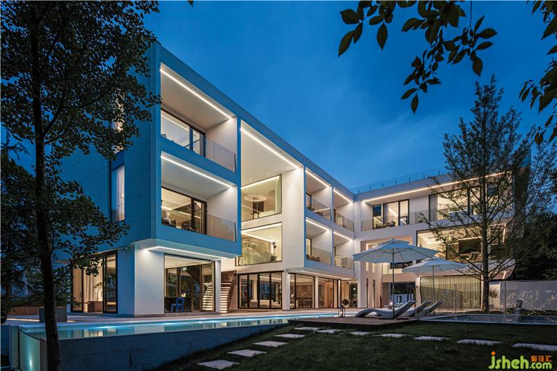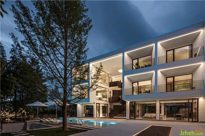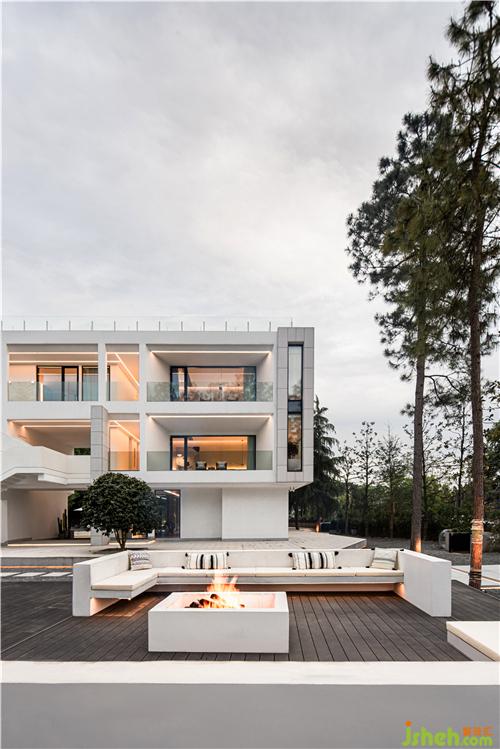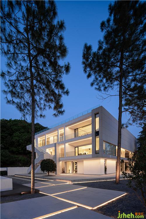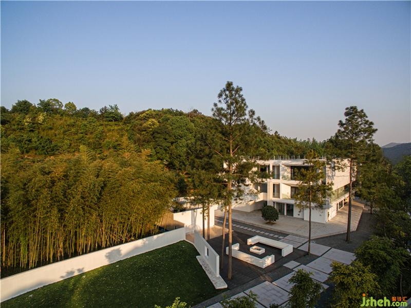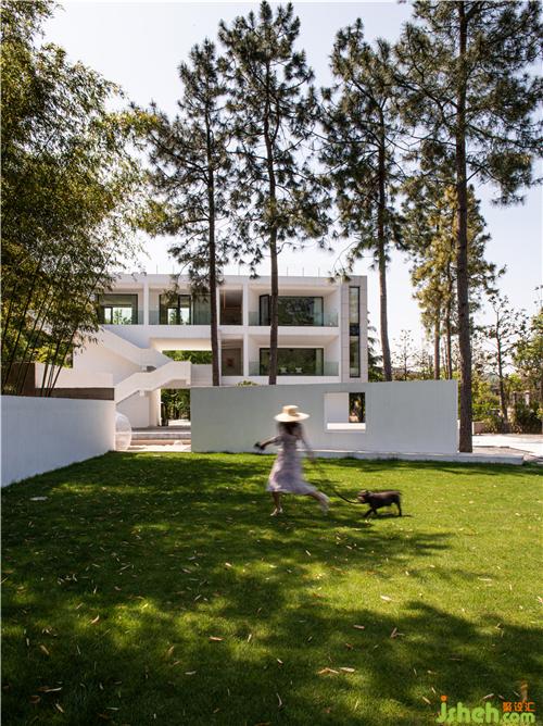 将底层架空,给予建筑通体白色,犹如一片洁白的云朵悬浮在空中,在周围植物的映衬下散发出神秘安静的气息。