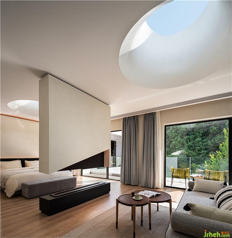 民宿主希望在这样一片自然环境中,建筑能够尽大可能地拥抱自然,纯澈,透明,设计师沈墨与陶建浦便以“杉里看云,云里看山”为主题,打造出了一个全新的建筑。