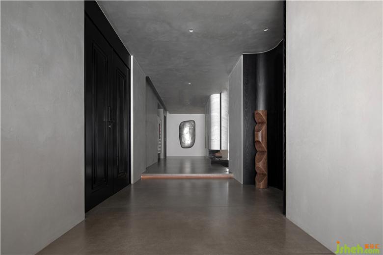 秉持着“大宅至简”的理念,将多余的东西剔除,设计师沈墨希望为空间赋予更多的精神内涵,结合了主人的爱好及职业属性,以自然、禅宗、中国功夫元素打造出一片城市中的森林,犹如置身于自然中,能够安静地呼吸与冥想。
