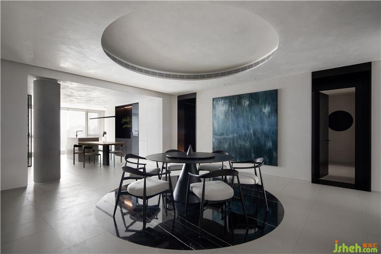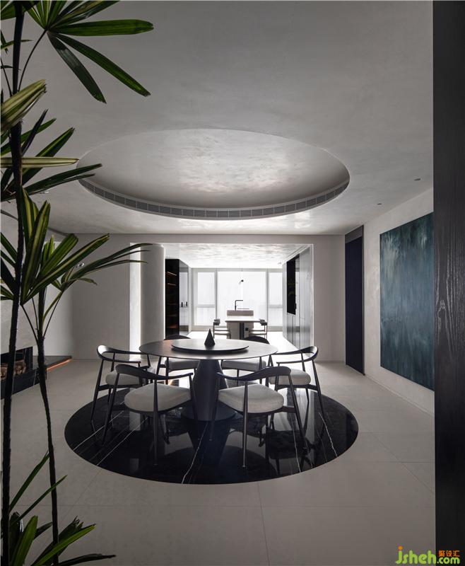 从中国功夫元素中提炼黑白灰的色彩,融合东方审美与禅宗思想,散发出静谧、素雅的格调。 空间犹如一幅流畅的画卷,每个角落在光影流动间都能产生种种诗意。