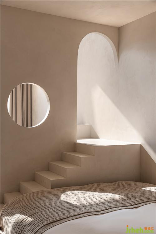 一进入空间,转角处的休息区种植着仙人掌等等热带植物,粗犷的陶罐与米色涂料搭配让人不自觉产生了仿若在沙滩上度假的感受。