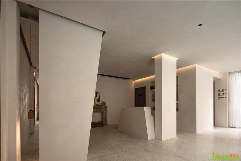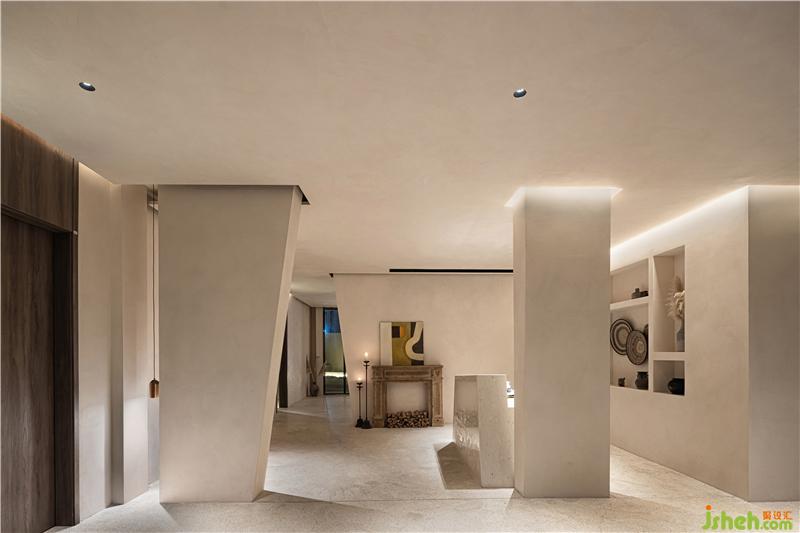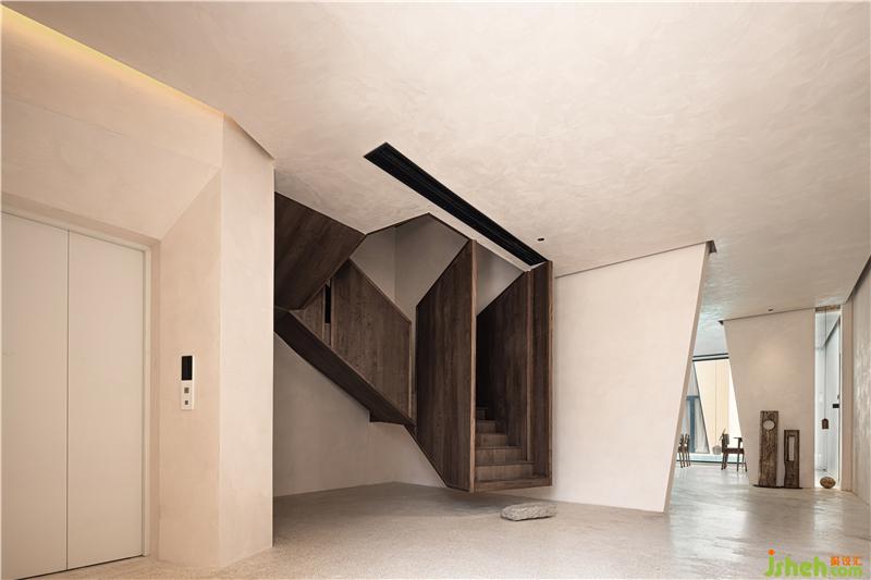 木质的楼梯像是悬浮在空间中,犹如一个艺术装置。