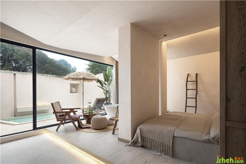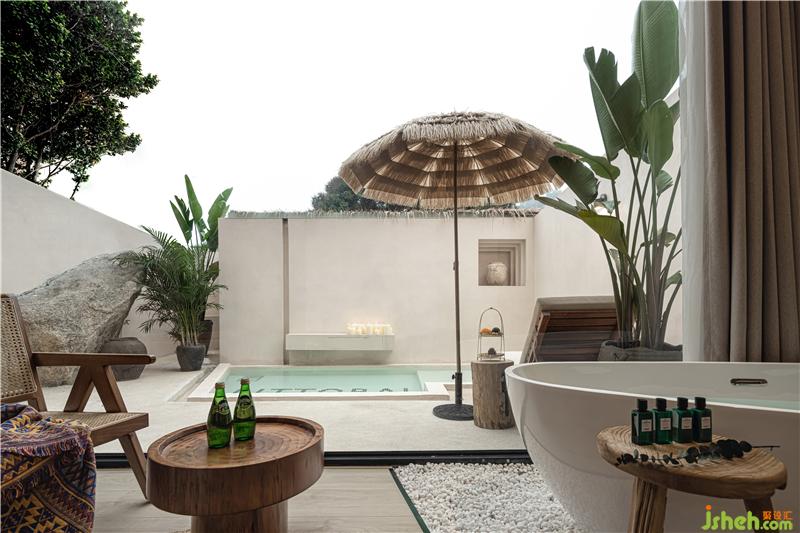 套房内的独立的院子与泡池,很好地隔绝了环境的干扰,享受极致的私人度假感厦门酒店设计。