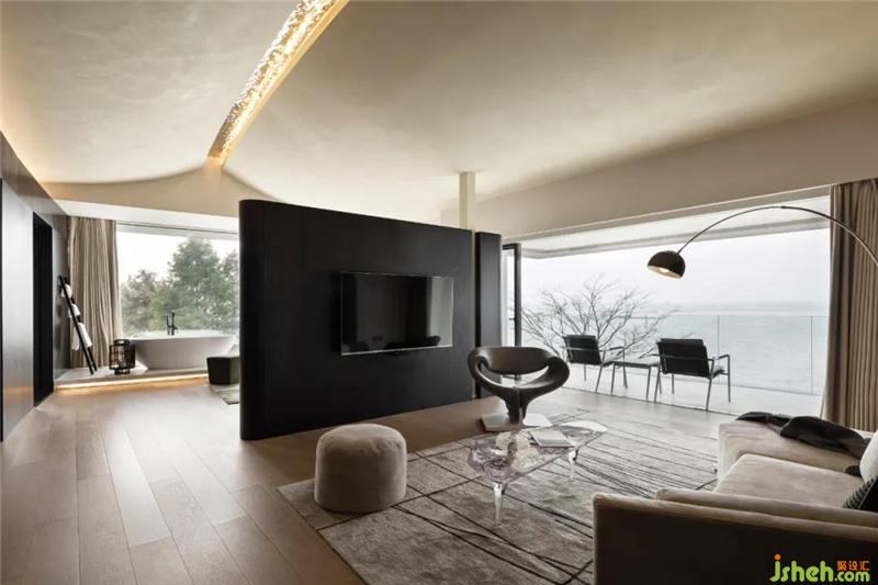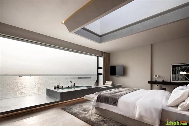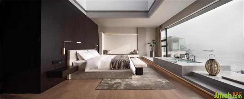 泊乐艺术酒店的十二间客房均朝向江水,在自然景观的环绕下,杭州酒店设计空间显得更加独特与触动人心。
