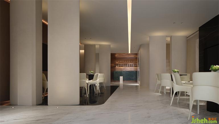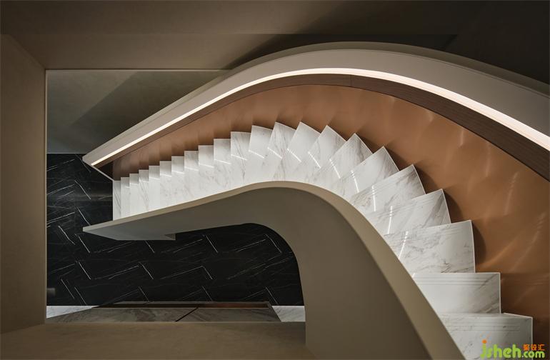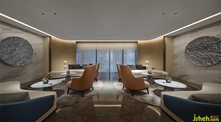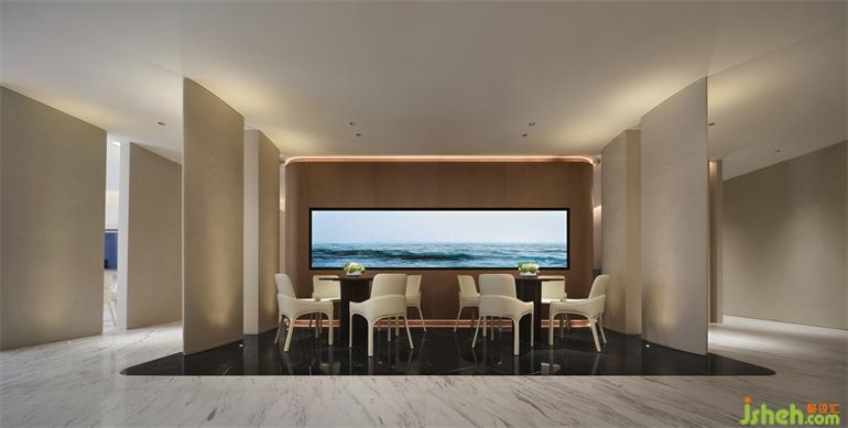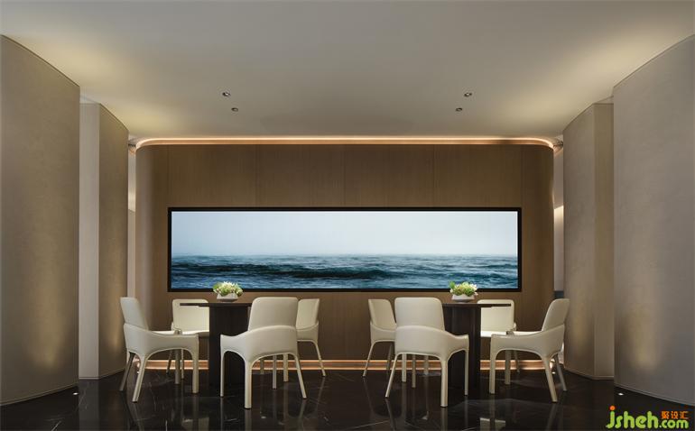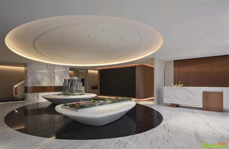 Entering the sales office, there is a white special-shaped sand table base in the center of vision, like two cruise ships sailing on the sea. Meanwhile, the modeling of dome echoes with themarblelike the sea with the sky.