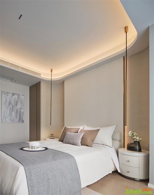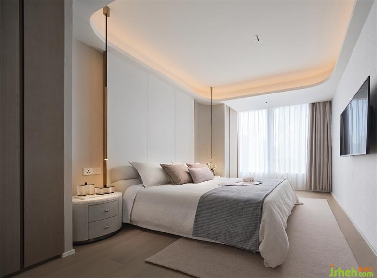 I house type is gentle and elegant with a plain color as its basic tone, in which the special-shaped sculpture embedded in the background wall lays the life tone of artistic sense for the whole space.