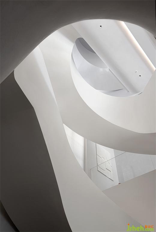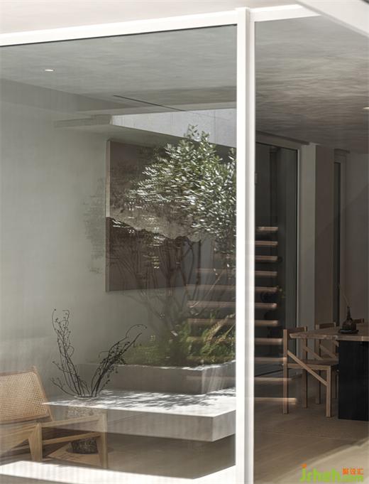 雕塑感的旋转楼梯始终贯穿着整个住宅,如树干般承载着空间的生长,光线进入室内,台州别墅设计视觉感受被纵向拉长,打破沉闷的格局,因此更加自由与充满力量感。