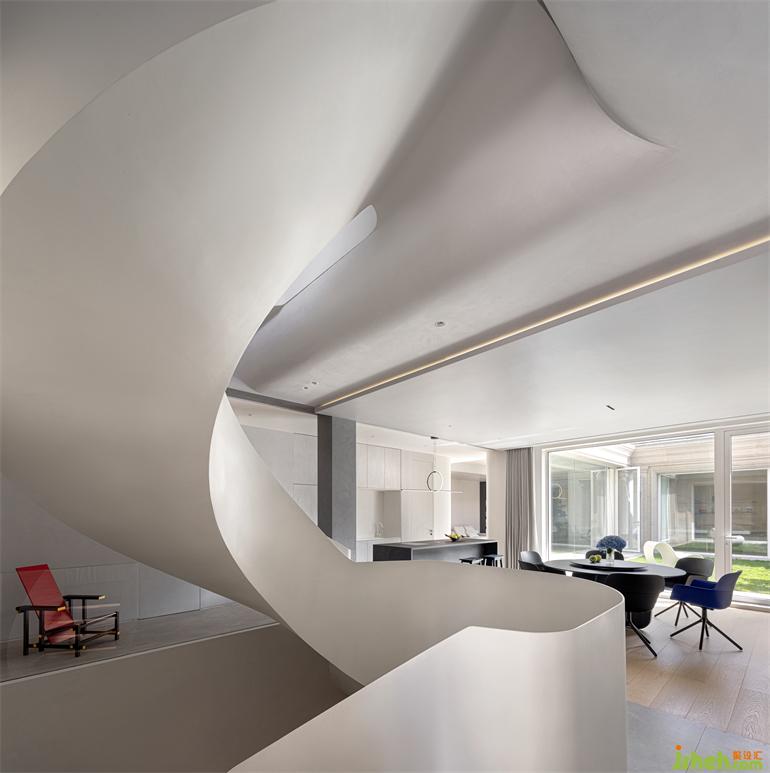 艺术品与设计师家具在空间中随处可见,承载着空间一定的精神内涵。台州别墅设计不似浓墨重彩地涂抹,亮色的家具在白色空间内恰好地起到了点缀之妙用。Artwork and designer furniture can be seen everywhere in the space, carrying a certain spiritual connotation of the space. Instead of smearing with heavy colors, bright-colored furniture plays a wonderful role in embellishment in the white space.