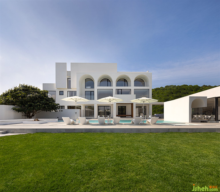 When sorting out the layout function, the main building and two auxiliary houses are planned in the way of three islands surrounding the geographical attributes of Sanshan Island. Outdoor activities lawn, book bar, restaurant and other Spaces are slightly expanded around the pool, reflecting the various activities on the beach, but also to meet customers' needs for home stay management.