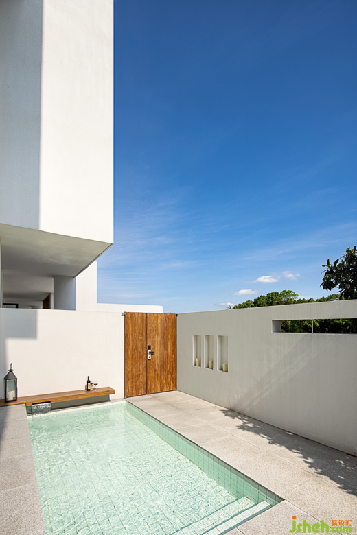 苏州民宿设计师在功能性上加入了许多考量,以现代化的生活视角,增设酒吧、泡池、厨房等空间,进一步融入美好的度假体验。