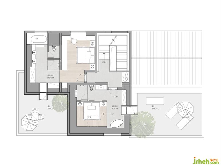In the design of the attic guest room, the original wooden beam structure is invisible and becomes a part of the building block, increasing the artistic sense of the space. The skylight treatment can not only broaden the view of the room, but also observe the starry sky at night.