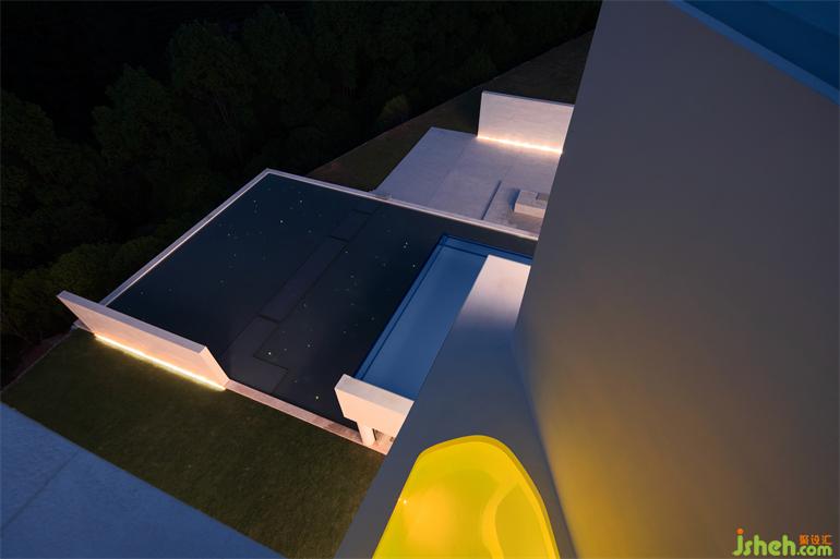 90°的落地开窗设计让周围群山尽收眼底,沉浸于摇篮形状的浴缸内,依山而眠。