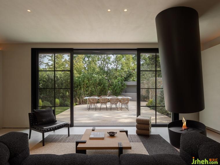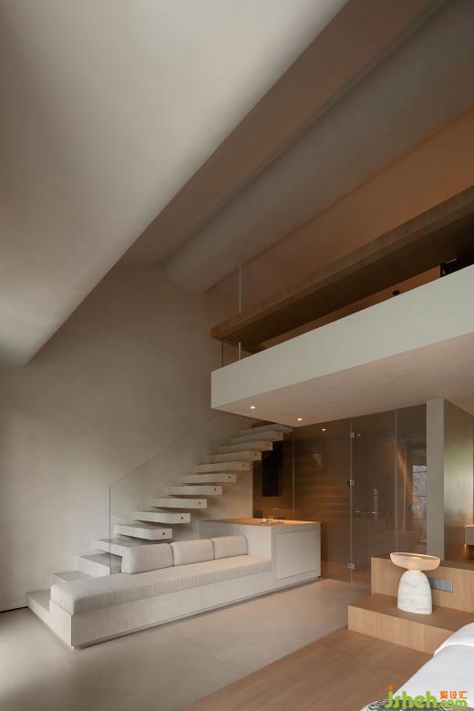 酒店设计要将坡屋顶特色与其他元素融合以彰显南法庄园民宿风格,设计师在建筑外观上,使用大面积的米白色墙体搭配深灰色坡屋顶,形成鲜明对比,在视觉上增强了建筑的立体感与层次感。