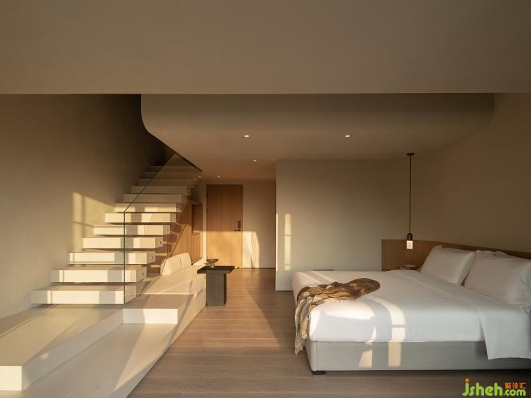The integrated design of the desktop and the bedside makes efficient use of space and brings great convenience to guests. The designer chose a uniquely shaped incense drum, and the fragrance it emits makes the room more elegant and cozy, full of warmth.