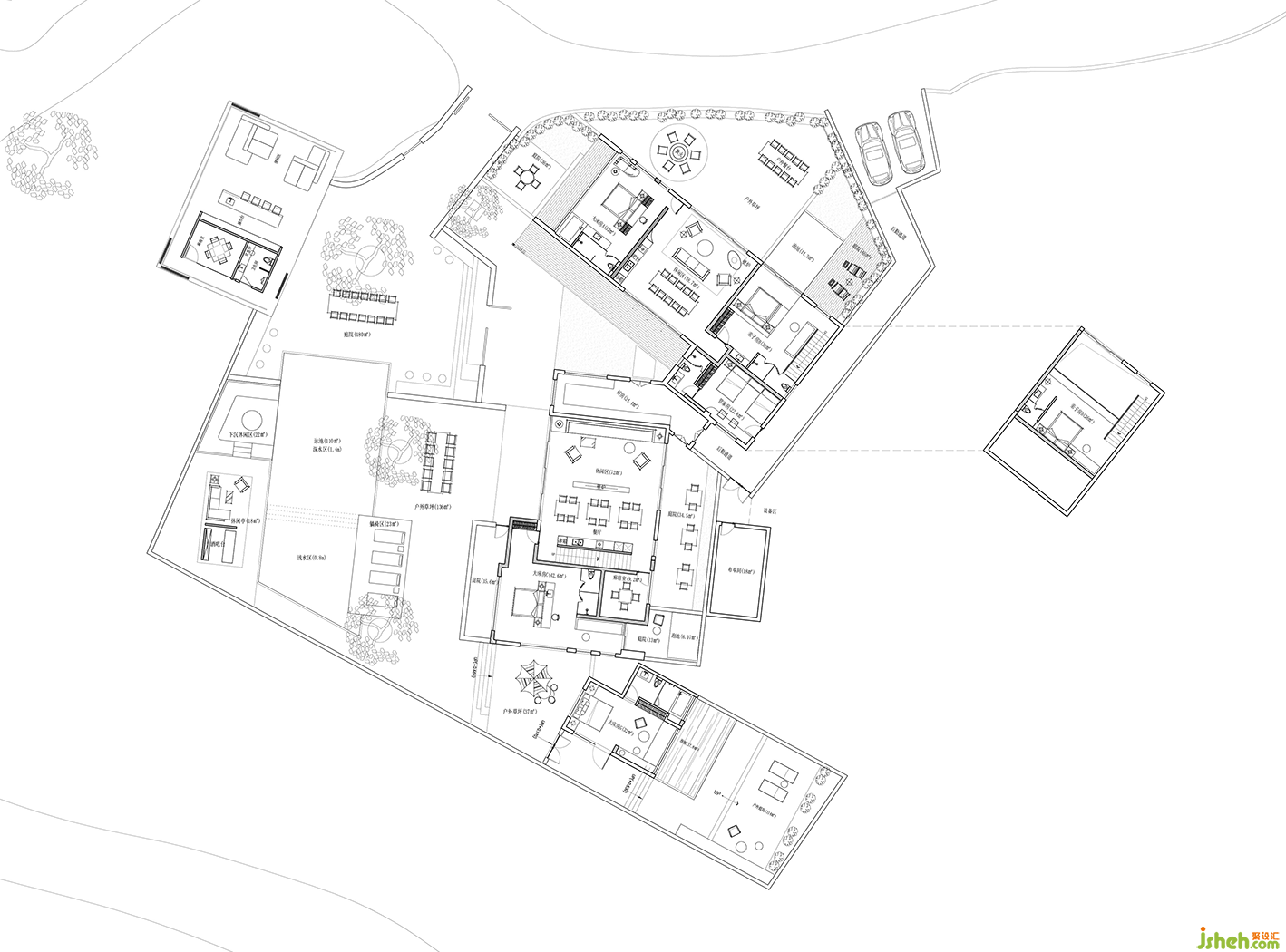 独栋设计区别于其他建筑,为来客提供绝对的隐私空间,自带户外庭院以及私享泡池。