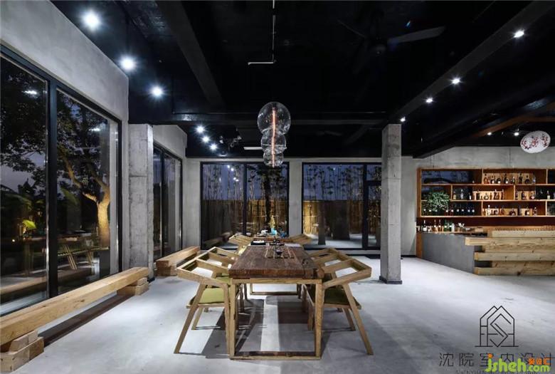 从草坪绕过来,进客厅,长桌上早已摆好了餐具,古朴的长桌和现代的餐具,透过四周的玻璃窗,就能看到四季变化,岁月在这些木头上刻下的痕迹。
