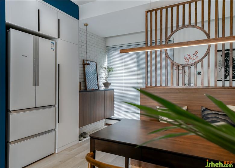 利用卡座制作了玄关与过道分离,结合了中式禅意的一些元素,让空间隔而不断