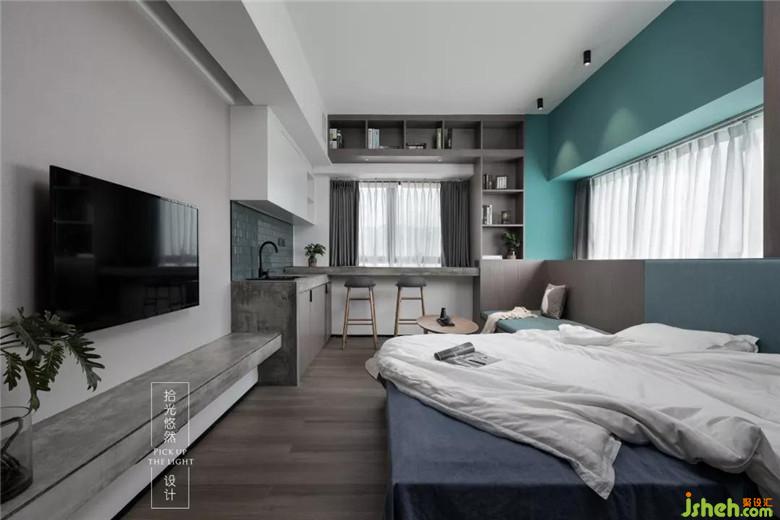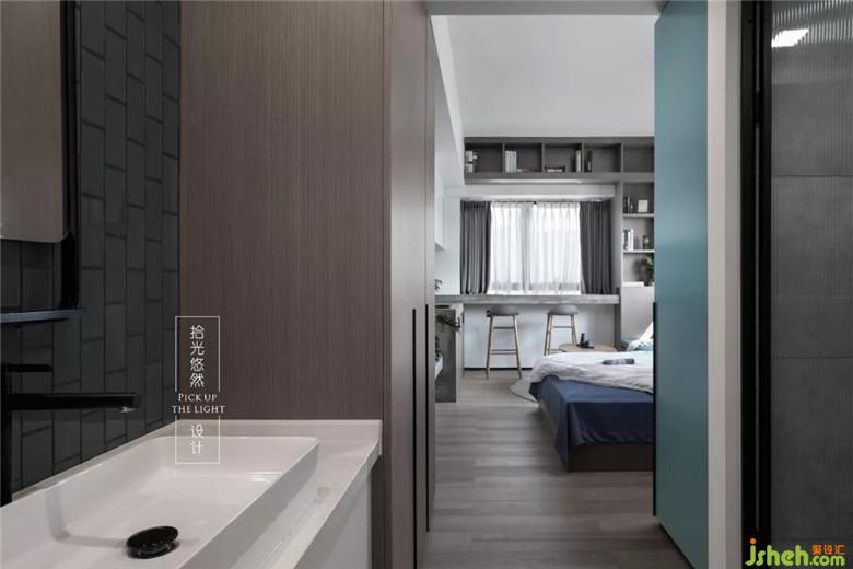 这次设计客户有很明确的审美喜好与生活需求,整个设计围绕睡眠、休息、创作这三个生活需求展开。只用暖灰色和蓝宝石色,让人很轻松,就像身处阳光充裕的海边沙滩或者夜幕下的北极空地,身心都能得到舒展,非常适合有一场好梦或者来一次灵感的邂逅。
