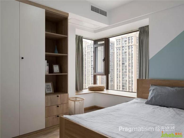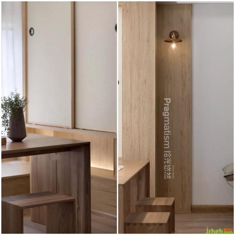 主次臥日式木質家具搭配深色背景墻,提高睡眠質量降低臥室空間亮度。