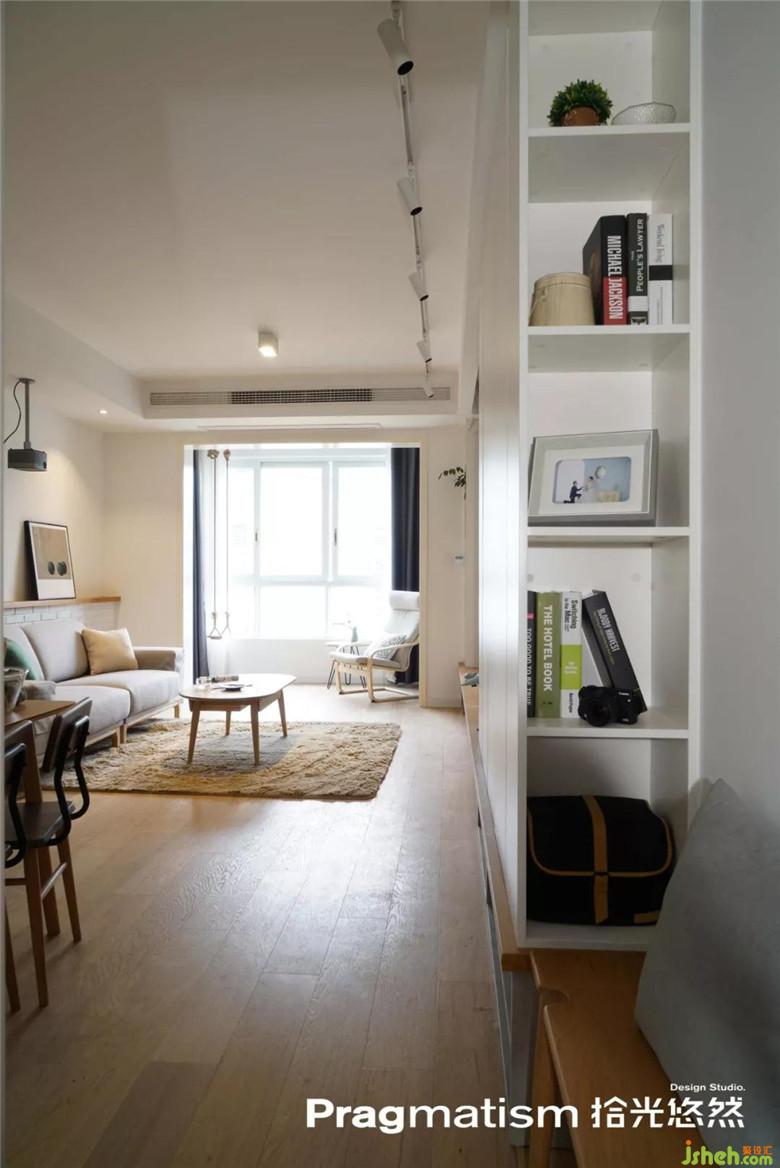 鞋柜侧面做了展示柜,可以放一些喜阴的小植物,收纳盒,或随手放包,将一些美好的瞬间放在这里,开门被幸福迎接。