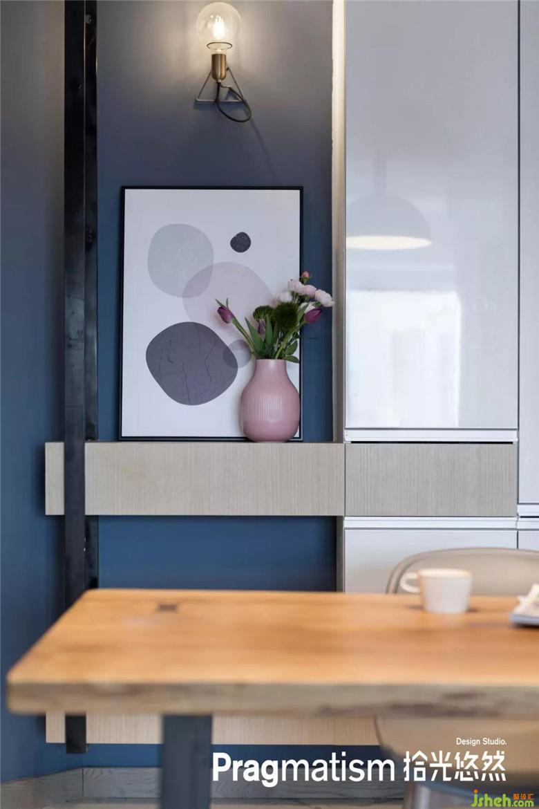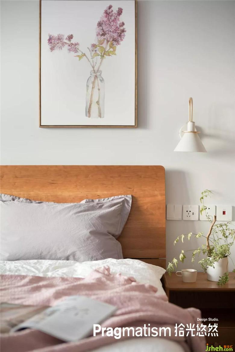 次卧房间地板用的鱼骨拼贴法把木地板的好看充分发挥了出来,收纳矮柜增加卧室空间的趣味感,樱花挂画应景又好看。