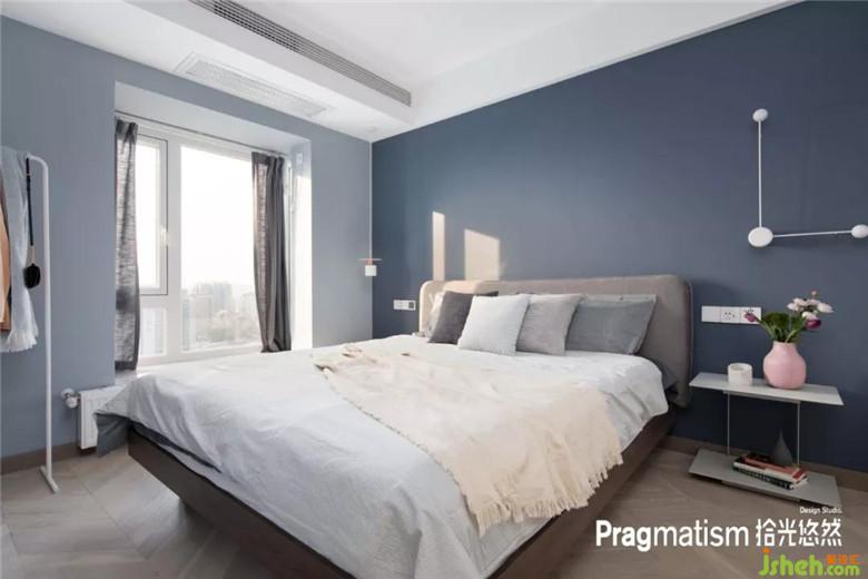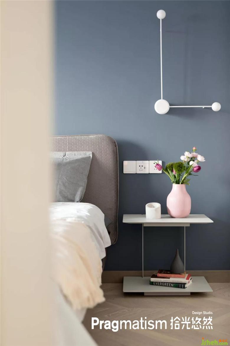 主卧稳重的墙面颜色能更好的助眠,两个床头灯独立于形式,统一于颜色。能各自发挥独特的光影效果,床头柜没有用笨重的款式,而且还能方便打理,落落大方。