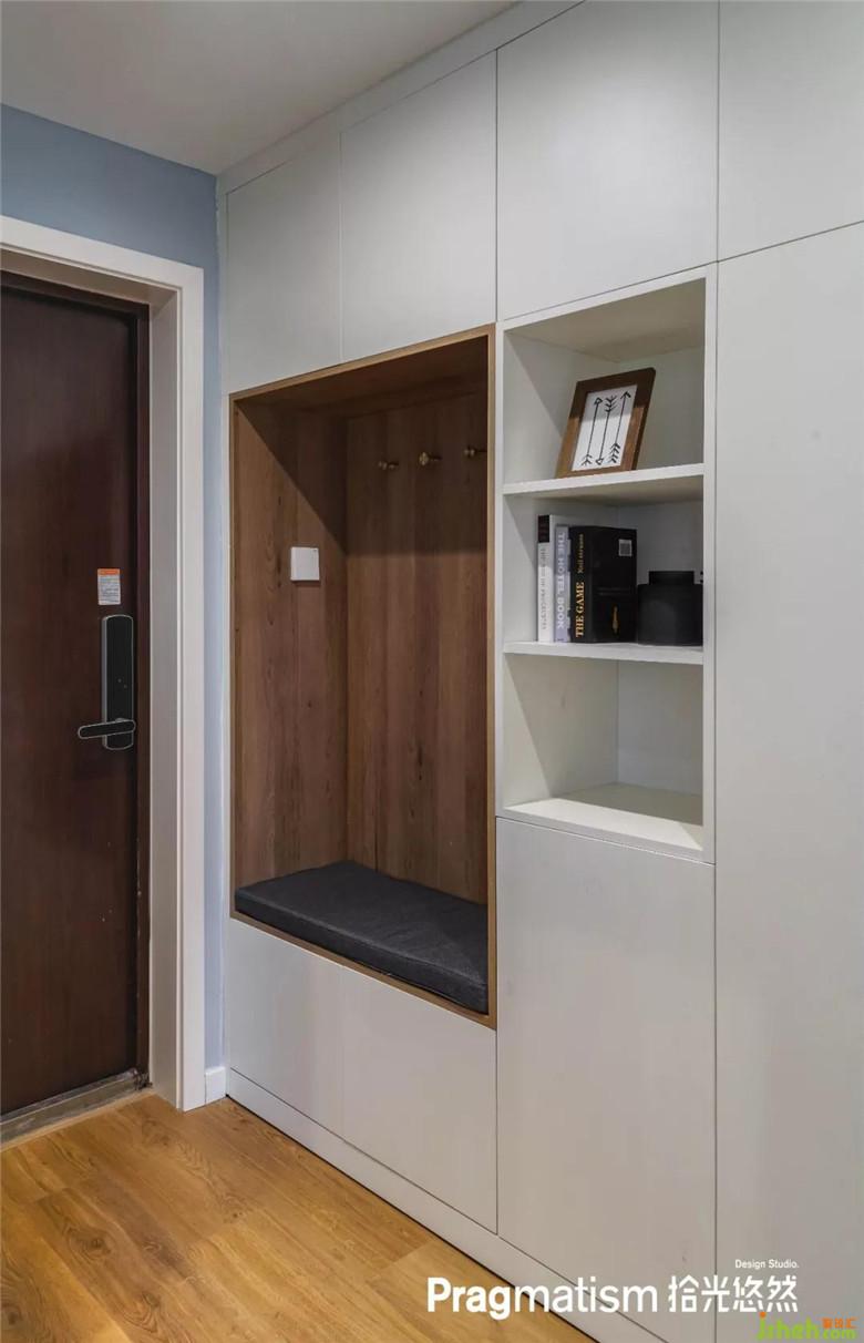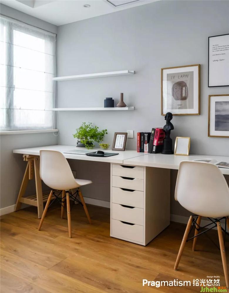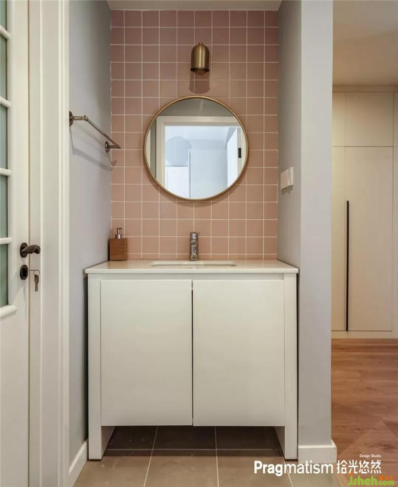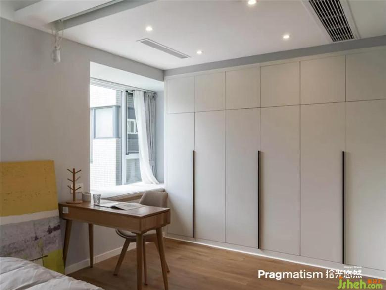 两个次卧连通为一个大主卧,在床尾一侧利用一整面墙打造一排脏衣区,利用原始户型的过道设计通过型衣帽间,方便沐浴前更衣。整体效果统一,房间也变得开阔。可收纳梳妆台是卧室的灵魂,它是满足每个女孩的精致妆容的秘密。