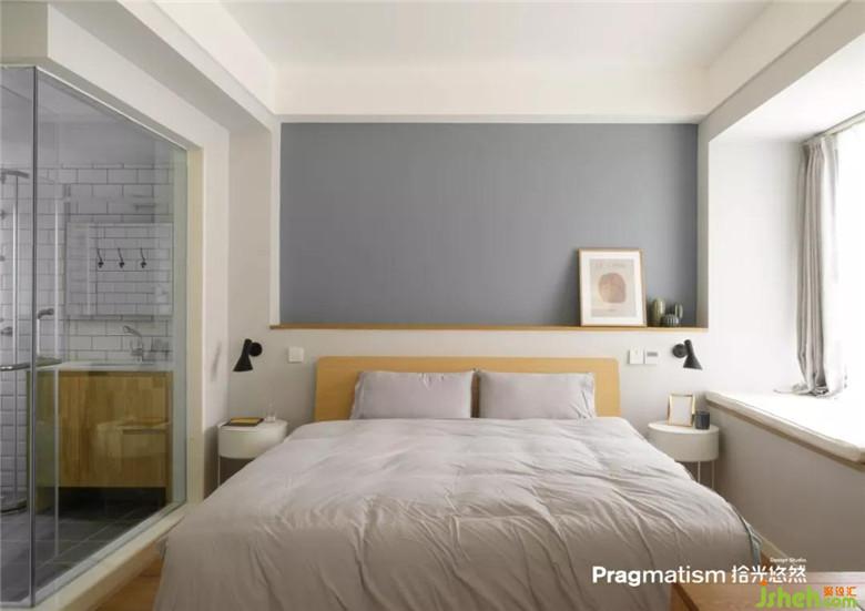 卧室承载着每个人的梦。优雅、饱满、莹润的蓝墙,搭配灰色床品,清新优雅。