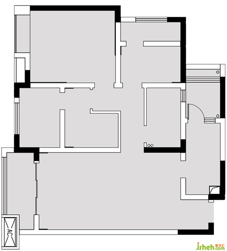 原户型分析 2. 阳台赠送面积小,整体空间多且零碎