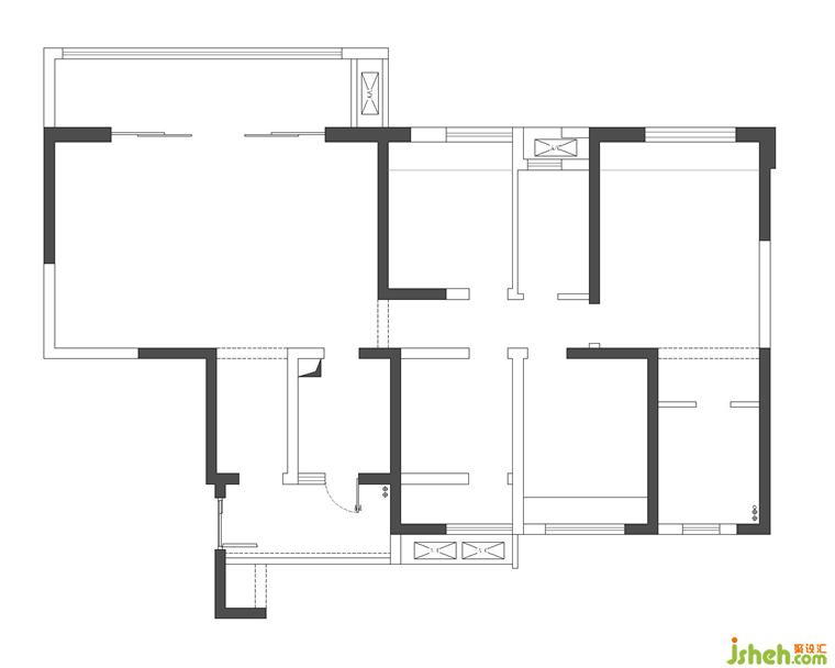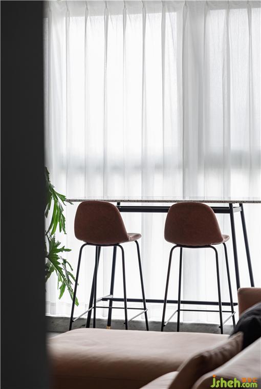 拆除阳台和客餐厅的推拉门,形式上让视觉更通透。