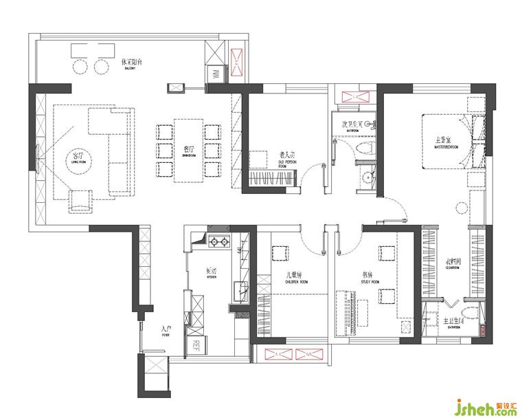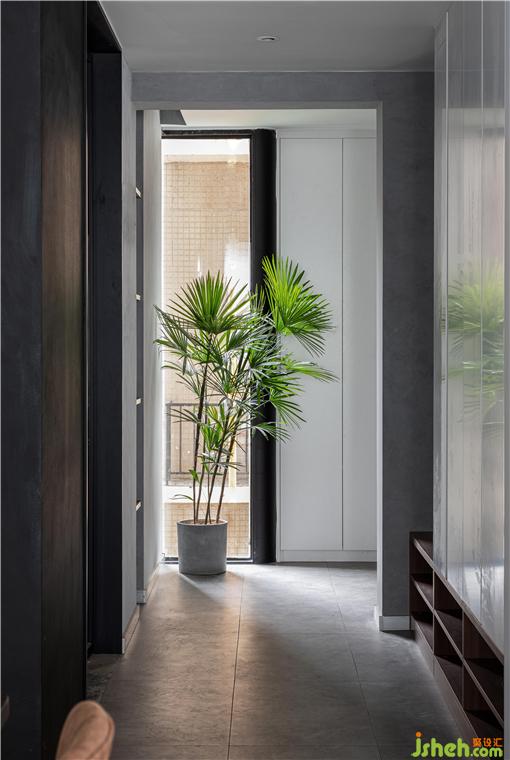 因为扩充了厨房,所以玄关相对变小了,通往客厅的过道考虑了鞋柜位置,避免了过道的浪费,增强了鞋柜的收纳。