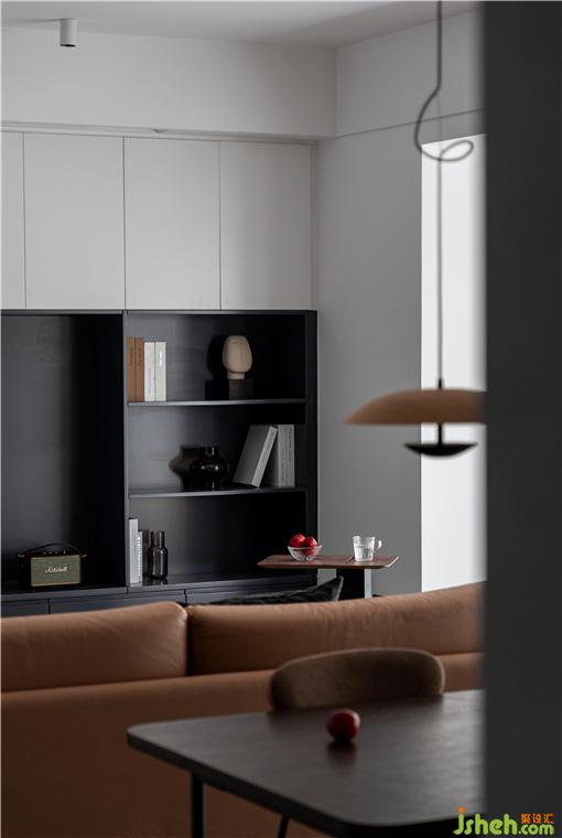 柜子局部考虑了开放格形式处理,既可以作为书籍装饰品的展示,也让整个空间不会觉得压抑。