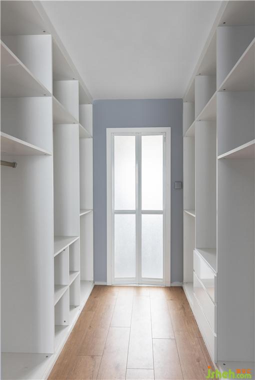 主卧的整个空间是比较大的,不过原户型留给衣帽间的位置较小,而屋主需要更多的衣物收纳,所以考虑压缩卫生间,以此增大衣帽间。装修公司