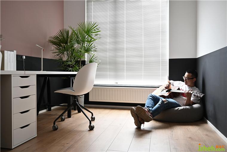 右边角落的位置放置了懒人沙发,工作完以后,可以躺着看看书,弹弹吉他,工作一天后可以得到深度的放松。