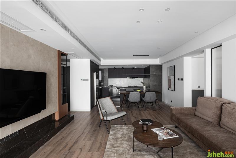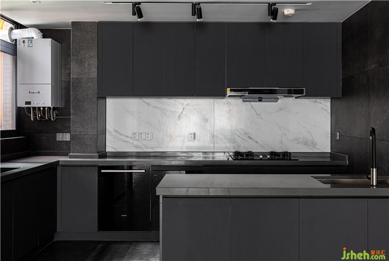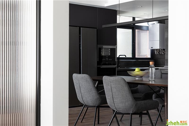 屋主当时告诉我们,希望厨房功能一定要强大,因为使用频率较高,还需要有类似厨岛的功能,女屋主会经常做西餐和一些西式甜点。于是,室内设计师将其做成开放式厨房,增大空间视觉效果。