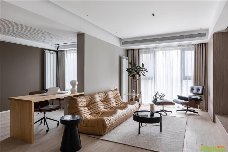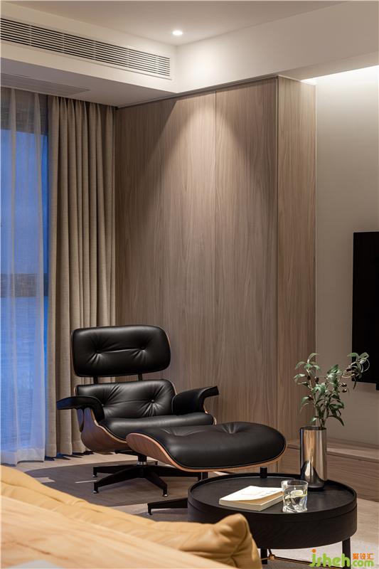 在家具形制上也以简洁经典为主,选择LIGNE ROSET的经典TOGO三人牛皮沙发与RAY EAMES的经典单人躺椅,这样的家具不仅提供了不错的舒适度与功能性,还不会喧宾夺主,与其他空间形成了和谐统一的整体。